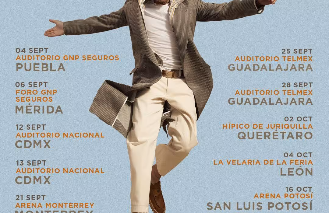 Las fechas confirmadas son: 4 de septiembre en el Auditorio GNP Seguros de Puebla; 6 de septiembre en el Foro GNP Seguros de Mérida; 12 y 13 de septiembre en el Auditorio Nacional de la Ciudad de México; 20 y 21 de septiembre en la Arena Monterrey; 25 y 28 de septiembre en el Auditorio Telmex de Guadalajara; 2 de octubre en el Hípico Juriquilla de Querétaro; 4 de octubre en La Velaria de la Feria en León; 16 de octubre en la Arena Potosí de San Luis Potosí; y 18 de octubre en el Teatro al Aire Libre de Villahermosa.