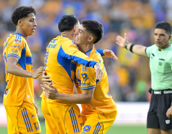 Ciudad De México, 12 de abril de 2026.- Los Tigres de la UANL golearon 4-1 a Chivas en el Estadio Universitario y los