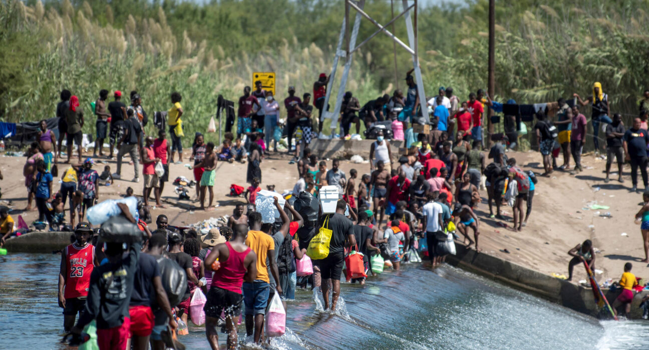 MEX134. CIUDAD ACUÑA (MEXICO),19/01/2025.- Fotografía de archivo del 18 de septiembre de 2021 de migrantes haitianos cruzando el Río Bravo rumbo a Estados Unidos, en Ciudad Acuña, estado de Coahuila (México). El regreso de Donald Trump a la presidencia de Estados Unidos este lunes inaugura una era de incertidumbre para México por sus posibles aranceles que ralentizarían la economía, deportaciones masivas que saturarían al país y bombardeos a cárteles del narco en territorio mexicano. EFE/Miguel Sierra/ARCHIVO