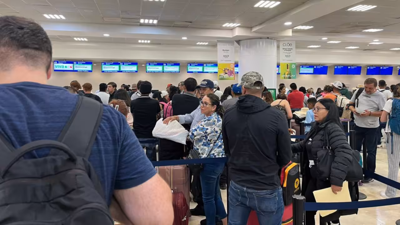 Otro de los afectados fue el Aeropuerto Internacional de Cancún y el Aeropuerto de Monterrey también reportaron la caída de sus sistemas, con largas filas para documentar a los pasajeros.