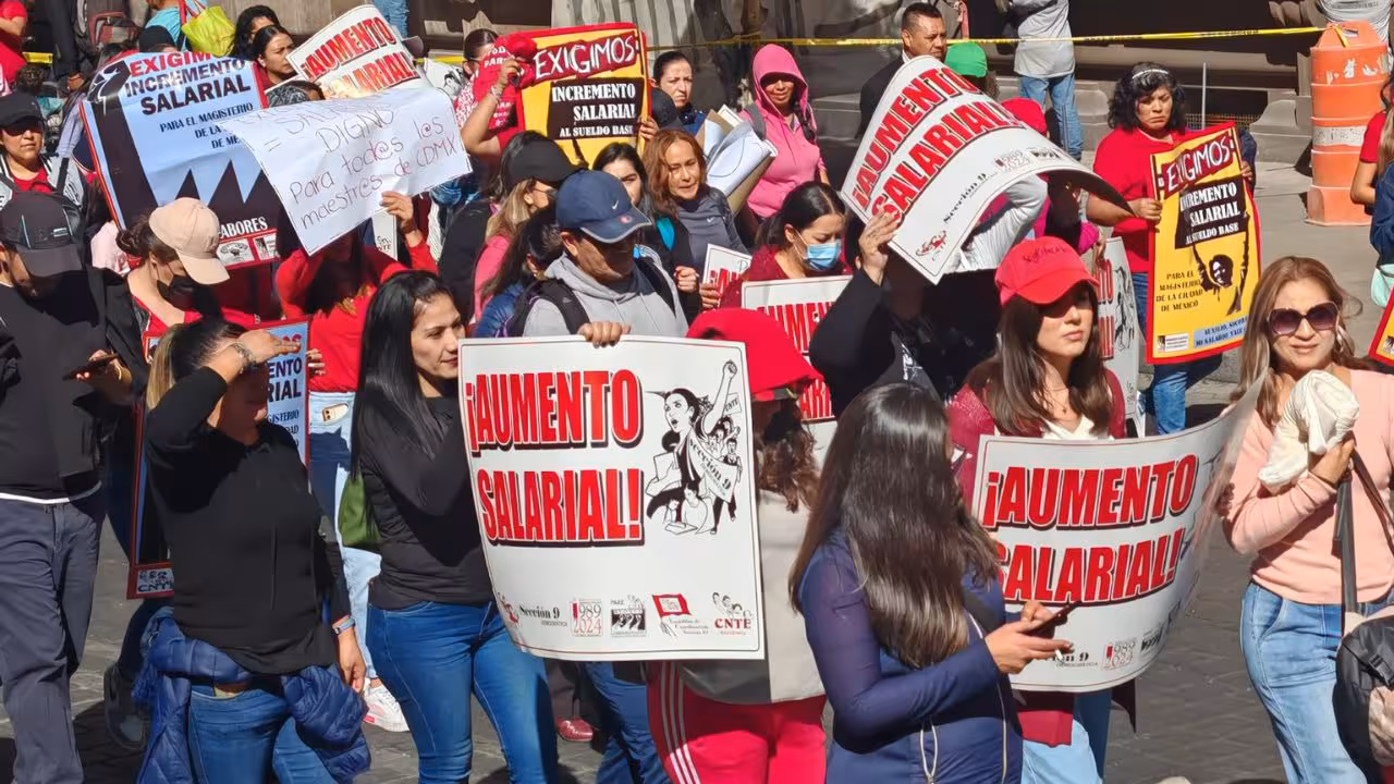 Los manifestantes se dirigen a la sede de la Secretaría de Educación Pública (SEP) con el fin de exigir que se inicie una mesa de negociación para abordar temas como un aumento salarial, basificación de docentes y la derogación de la Ley del ISSSTE.