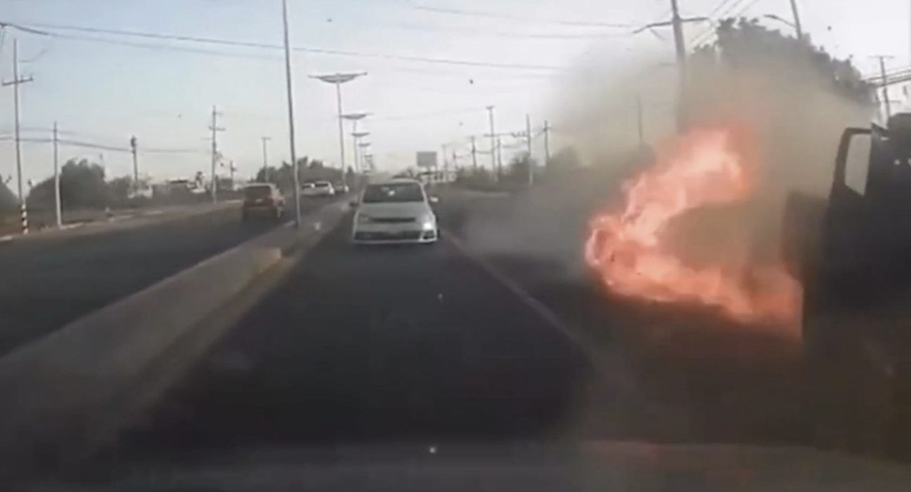 Tras la explosión, la unidad perdió el control, se saltó a los carriles contrarios y finalmente se estrelló en el otro extremo de la carretera. El momento de la explosión fue captado por la cámara de un vehículo que circulaba por la misma vía y el material fue difundido en redes sociales.