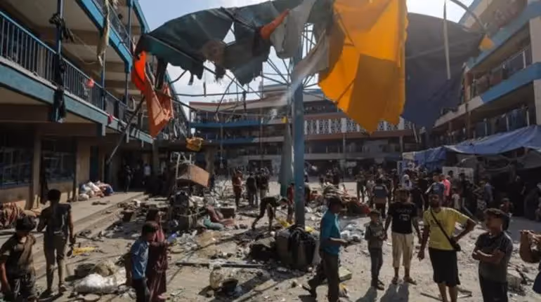 En vídeos difundidos en canales palestinos se observa a cientos de personas corriendo a través del patio de la escuela, algunas cargando con heridos, mientras en la zona afectada decenas de civiles tratan de desenterrar a quienes han quedado atrapados entre los escombros, entre ellos un niño.