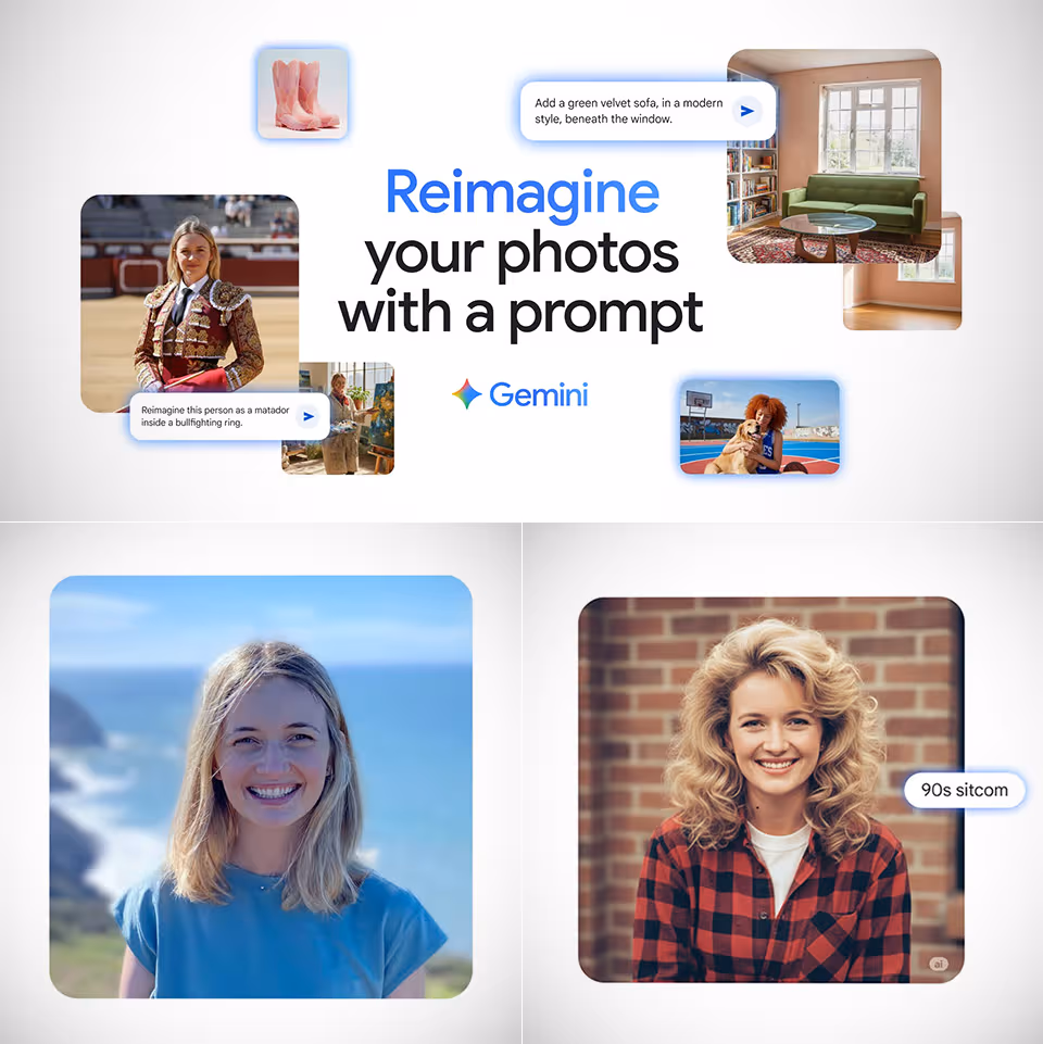 Para el usuario común, la experiencia es la de un estudio de diseño dialogado: cargas tu foto, pides “ponme un traje de los 90 sin tocar la cara”, “mezcla esta habitación con el estilo de este catálogo”, “pega a mi perro en este paisaje y deja su pelaje igual”, y Gemini iterará contigo hasta pulir el resultado. Para equipos creativos, el valor está en consistencia de marca (misma persona u objeto en múltiples escenarios) y en acelerar bocetaje y versiones sin salir de la conversación. Todo esto se puede probar desde la app y el sitio de Gemini y, si se quiere construir sobre ello, en Google AI Studio con plantillas listas para “remixar” y desplegar.
