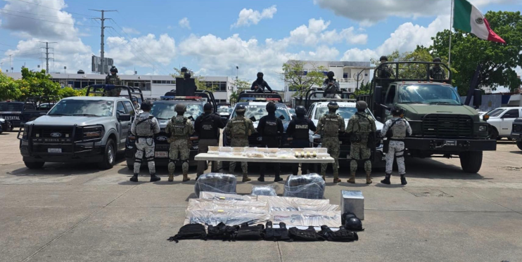 Entre lo asegurado en Tabasco se encuentran grandes cantidades de drogas, bultos con hierba seca con características similares a la marihuana, y bolsas y dosis de una sustancia color blanco con características propias de la droga conocida como cristal.