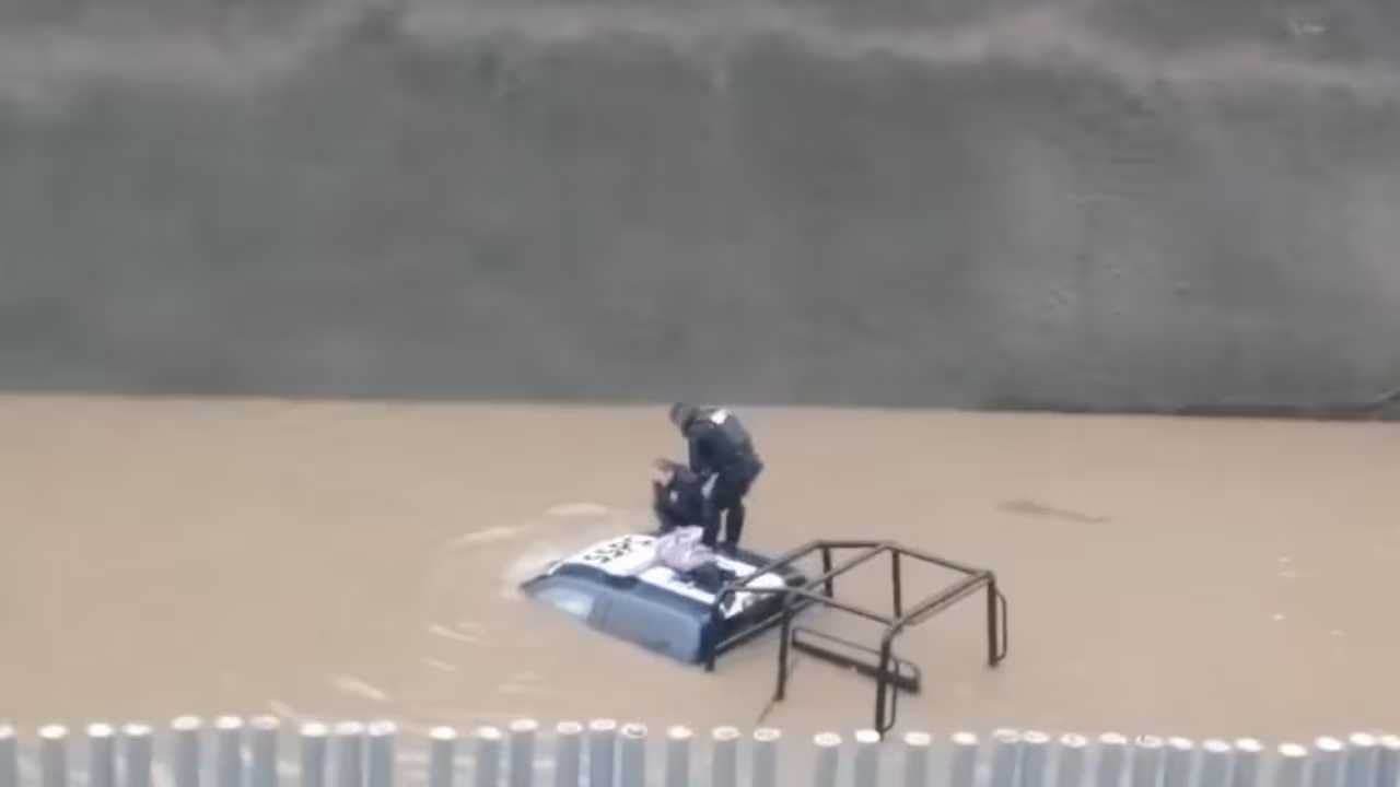 Después de que los oficiales fueran rescatados, se utilizó una grúa para poder retirar la patrulla del lugar y continuar con los trabajos de desagüe.