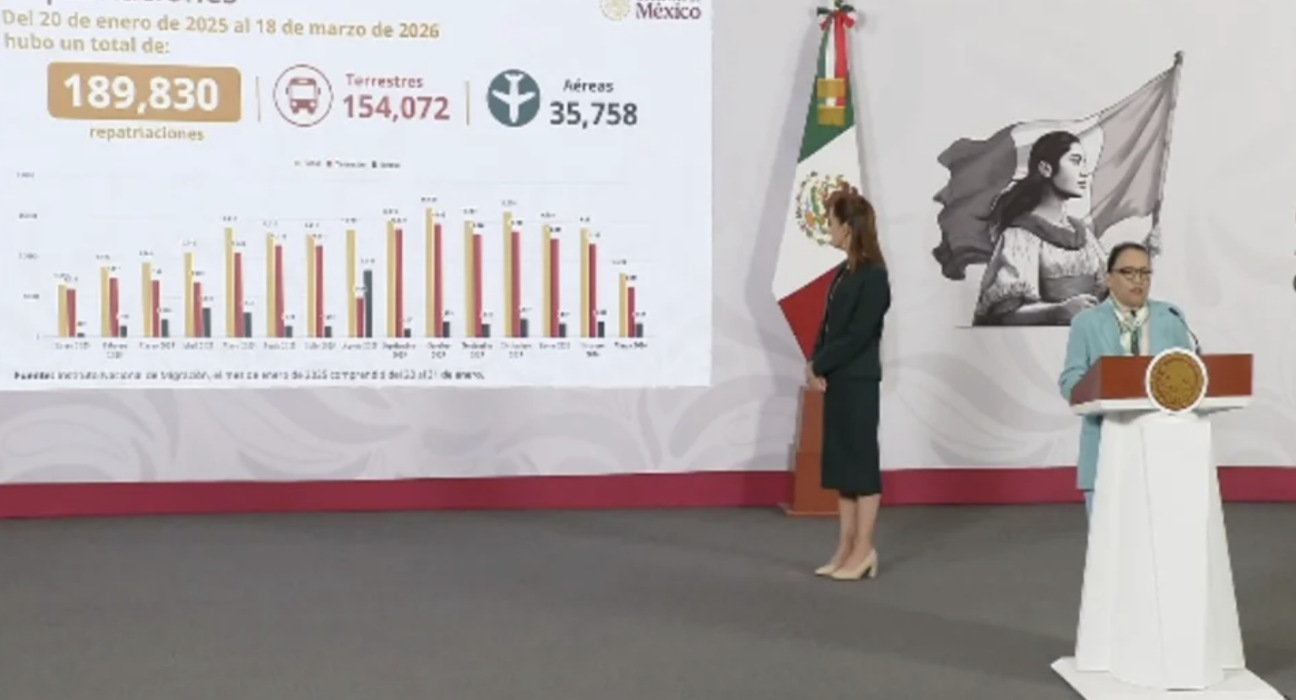Ciudad de Mexico, 20 de marzo de 2026.- La Secretaría de Gobernación (Segob) informó que, entre el 20 de enero de 2025 y el 18 de marzo de 2026, fueron deportados 189,830 ciudadanos mexicanos desde Estados Unidos durante la administración de Donald Trump. La titular del departamento, Rosa Icela Rodríguez, presentó los datos este 19 de marzo durante la conferencia matutina del gobierno federal, donde también expuso los detalles del proceso de recepción y la estrategia de atención a los repatriados.