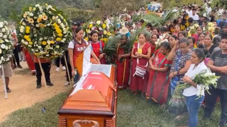 Durante el funeral de Rigoberto Martínez Sandoval, entrenador de basquetbol de niños triquis, los pequeños que entrenaba lo despidieron lanzando balones de basquetbol al aire, un emotivo gesto que simboliza el legado que deja en sus corazones.